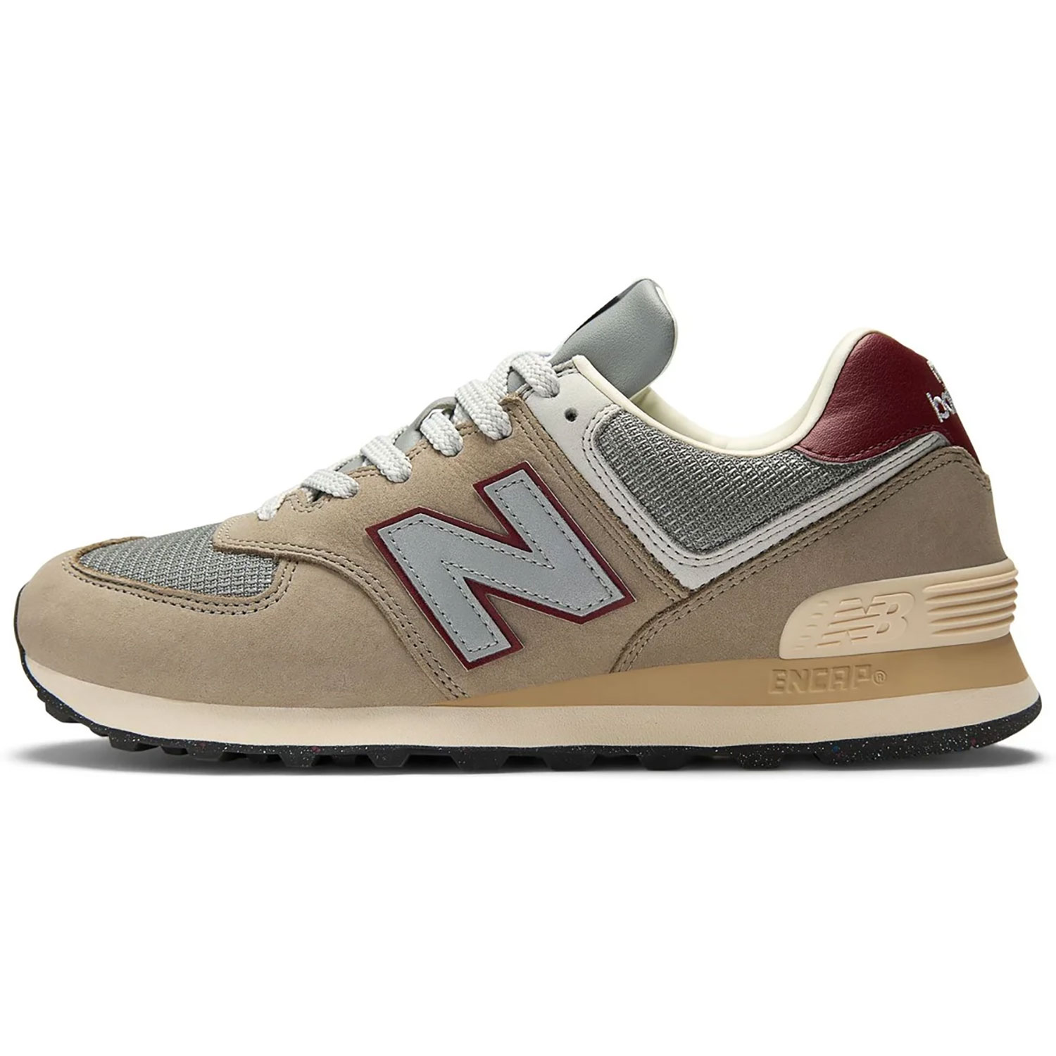 Im Inneren überzeugt der Schuh mit einer EVA-Zwischensohle und der bewährten ENCAP-Dämpfung, die zusammen für hervorragenden Tragekomfort und zuverlässige Stabilität sorgen. Die griffige Gummiaußensohle bietet optimalen Halt und macht den 574 zum robusten Begleiter für den täglichen Einsatz.
