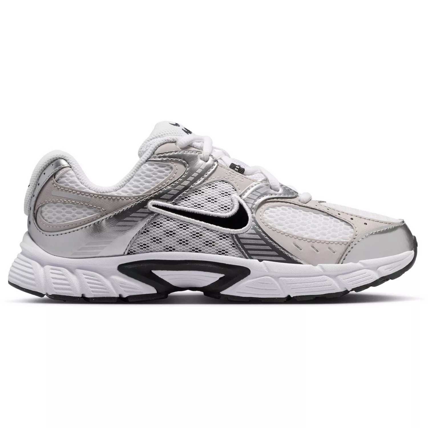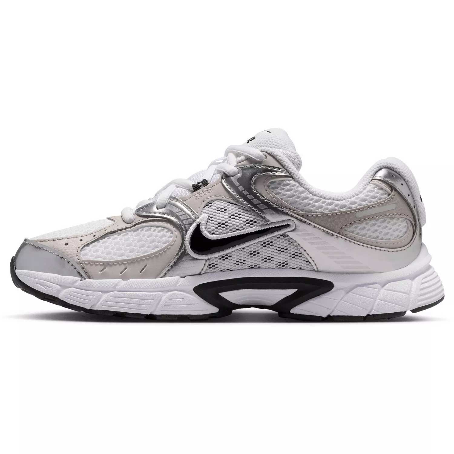 Besonders auffällig sind die silbernen Details, die dem Schuh einen dynamischen und leicht futuristischen Akzent verleihen. Der klassische Nike-Look wird dadurch modern interpretiert, ohne an Wiedererkennungswert zu verlieren. Insgesamt ist der Nike W V5 RNR Kinder Sneaker eine gelungene Mischung aus Stil, Funktionalität und Alltagstauglichkeit – ideal für aktive Kinder, die Wert auf Komfort und ein cooles Erscheinungsbild legen.
